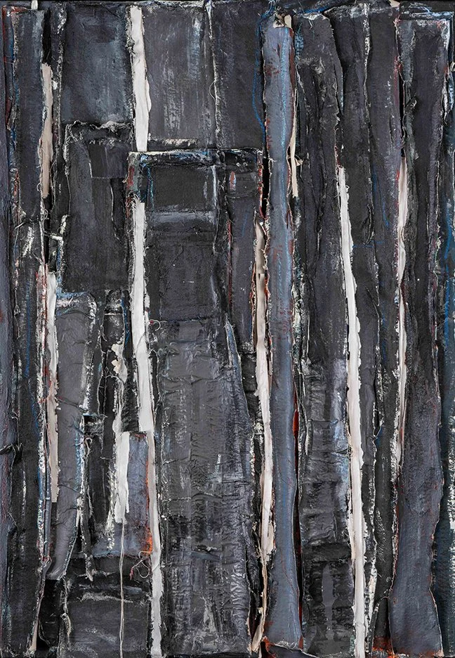 David Hauge, Vertical Field, 43x31, acrylic, pastel, fabric on canvas