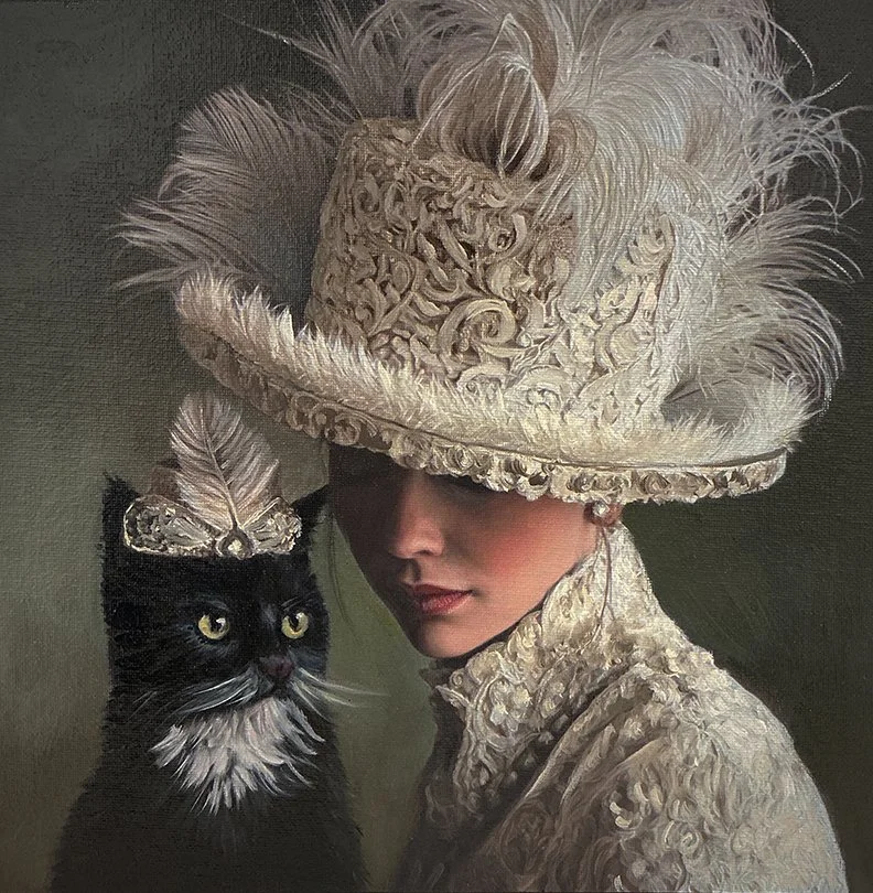 Jandi Small, Society of Two, Ivory, 14x14, oil on canvas panel