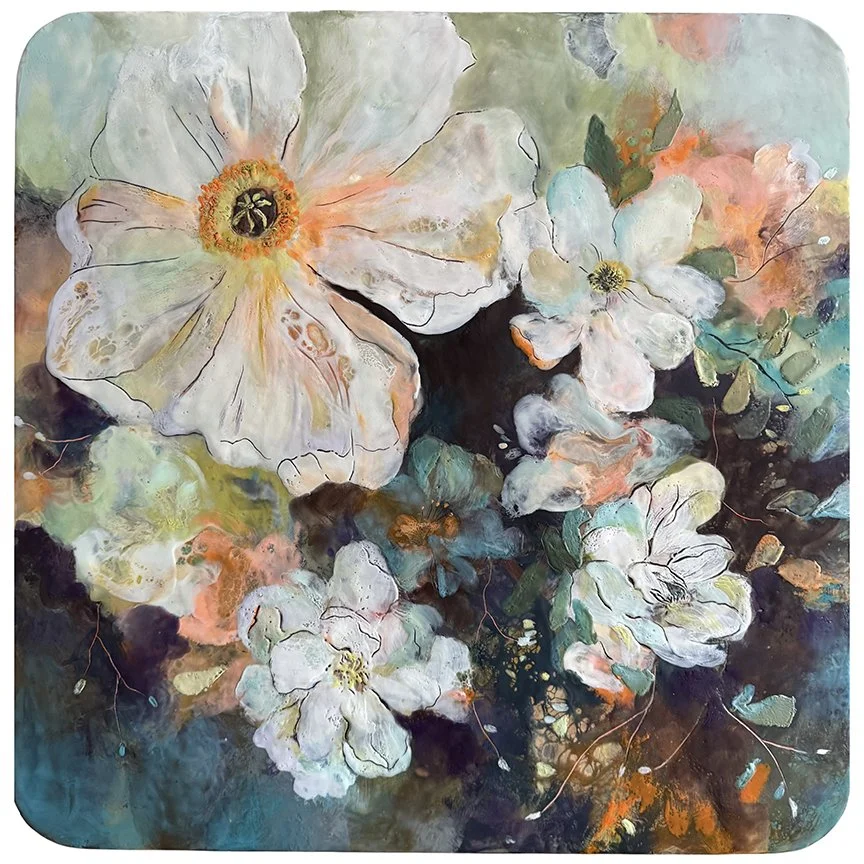 Lori Fowler, Ready to Bloom, 23x23, oil-based pigment, ink, encaustic