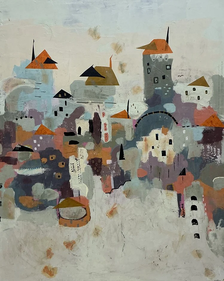 Jane Stern, A Bright Light Returns, 30x24, oil, mixed media on panel, SOLD